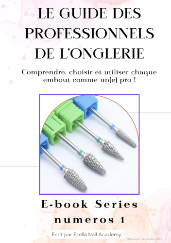 E-book embouts de manucure, plus de 35 embouts détaillés (utilité, inclinaison, RPM, types de peaux) + 4 cours techniques (entretien, gauchers, revêtements, formes). Référence claire pour OF et formateur independant dans le domaine de l’onglerie, pros et débutants pour sécuriser tes gestes et standardiser tes protocoles, sans abîmer la plaque.